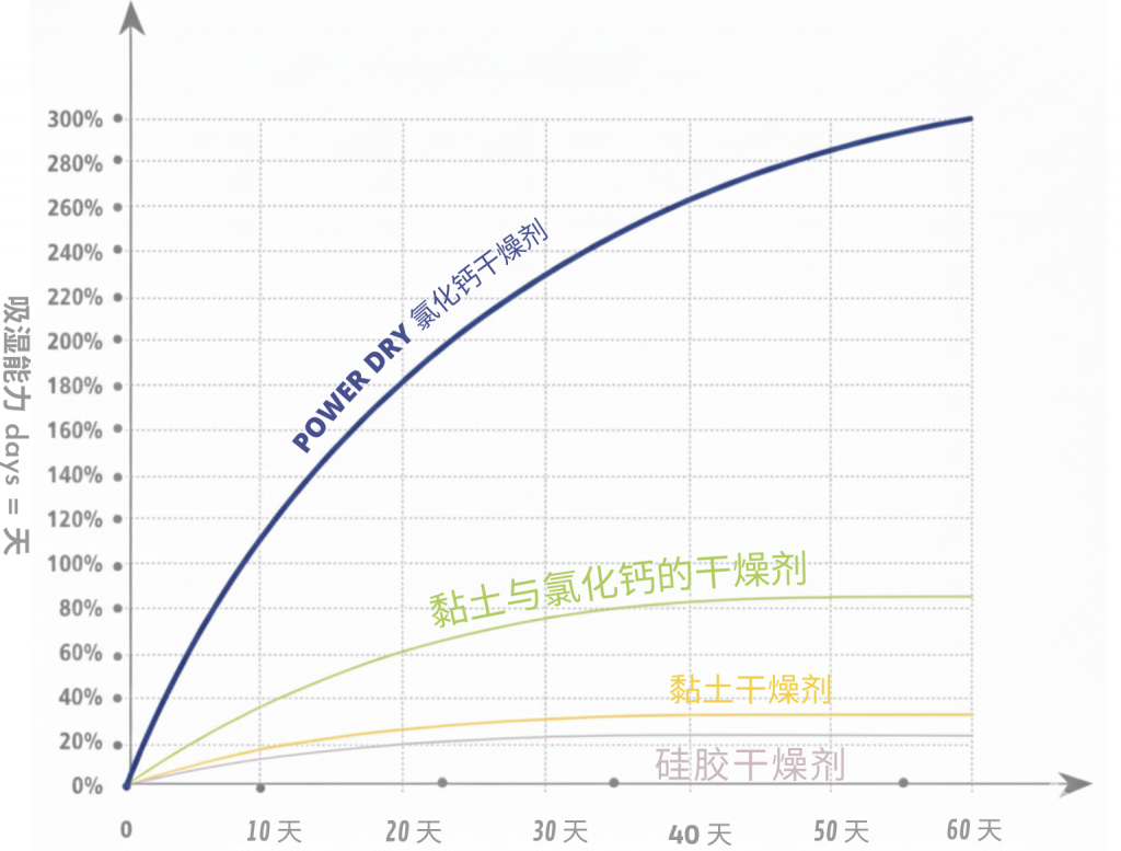 - Power Dry 具有极强的吸湿能力,可从空气中吸收水分,从而降低受控环境中的湿度。产品在吸收周围环境的水分后会变成凝胶状,吸收后不渗漏,有效消除二次蒸发或渗漏的风险,避免对您的货物造成损害。